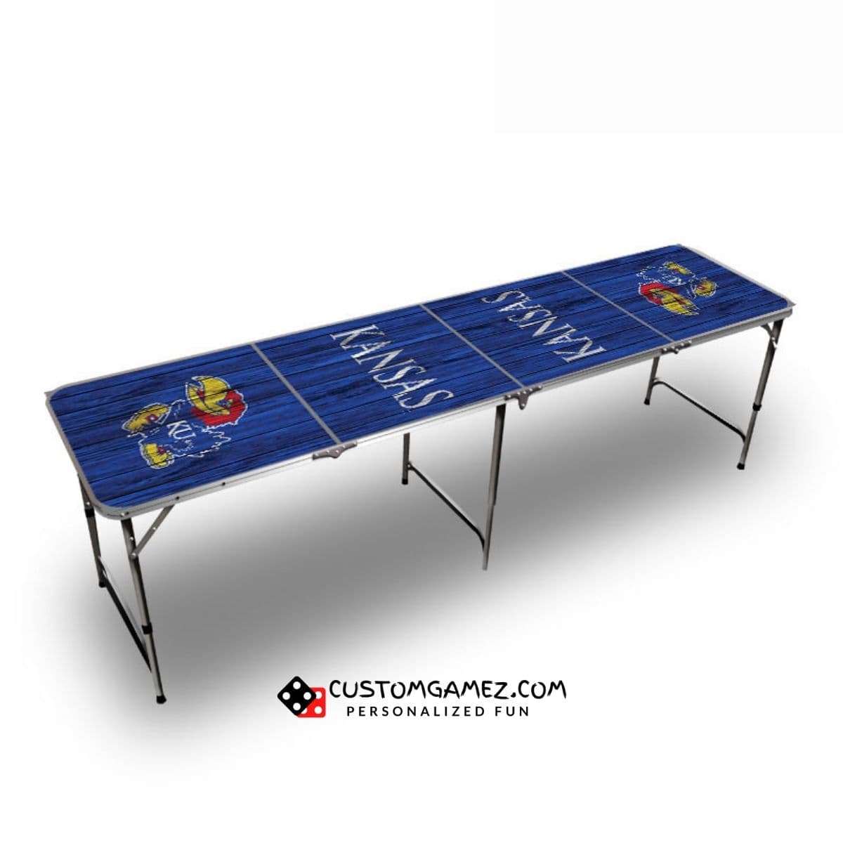 Portable & Foldable for Easy Storage This University of Kansas Beer Pong Table folds down to just 24x24x6 inches and weighs only 22 lbs, making it effortless to transport and store between tailgates, parties, and game days.